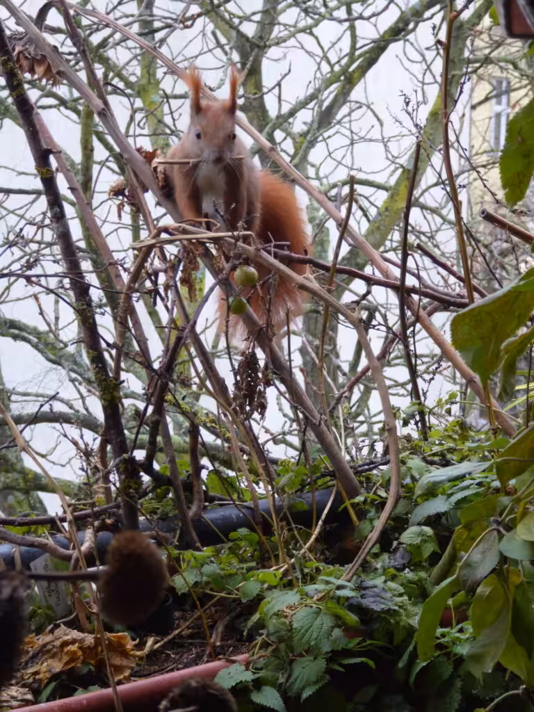 Und dann, wir wohnen im 3. OG, das erste mal: Eichhörnchensichtung im November. Das war vielleicht eine Aufregung. Dass wir bald Eichhörncheneltern werden, hätten wir damals nie gedacht.