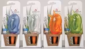 Erhältlich mit 90 ml, 0,22 l, 0,33 l, 1,0 l Volumen figürlich als Vogel “Bördy”, Frosch “Froggy” oder elegant als “Copa” von Scheurich.