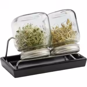 Sprossengläser sind für mich die beste Variante, Sprossen zu ziehen. Die Samen werden direkt im Sprossenglas für ca. 8 bis 12 Stunden eingeweicht. Danach einfach kopfüber schräg auf dem Gestell platzieren. Aufgrund der Schräglage läuft das Wasser gut ab und die Löcher im Siebdeckel lassen genug Luft an die Sprossen. Zweimaliges tägliches Wässern (morgens und abends) ist notwendig, damit die Sprossen optimal mit Feuchtigkeit versorgt werden.