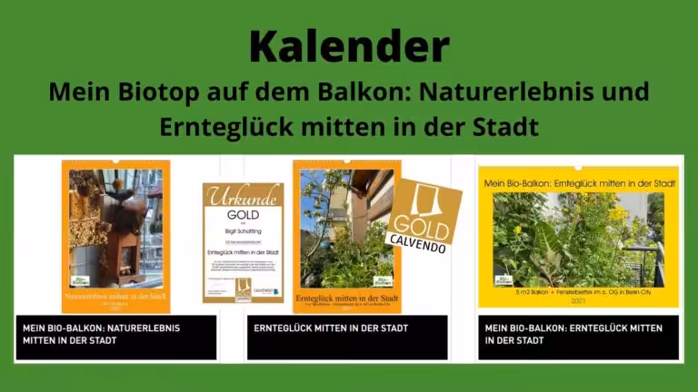 Ich bin ein bisschen stolz auf die drei Kalender, weil alle Fotos von meinen Balkons in 2020 stammen. Auch die ganzen Erntebilder. Alles 2020. Es ist so viel möglich. „Ernteglück mitten in der Stadt“ erhielt die Anerkennung CALVENDO Gold-Edition. Beim regionalen Buchhändler oder online sind sie bestellbar.