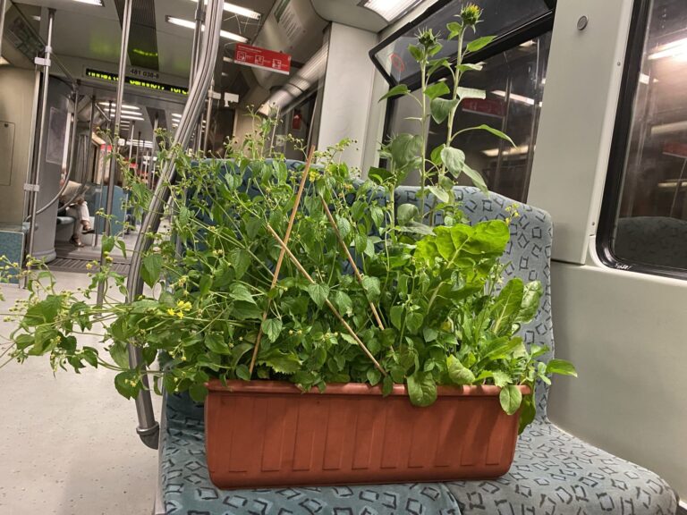 On the way to the “Down to Earth” exhibition with a balcony box