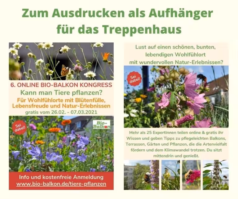 Ich lade DICH ein, UnterstützerIn für mehr GRÜN UND BLÜTEN STATT GRAU zu sein und andere Menschen einzuladen. Das spannende und abwechslungsreiche Programm ist nicht nur für BalkongärtnerInnen empfehlenswert, auch TerrassengärtnerInnen profitieren.