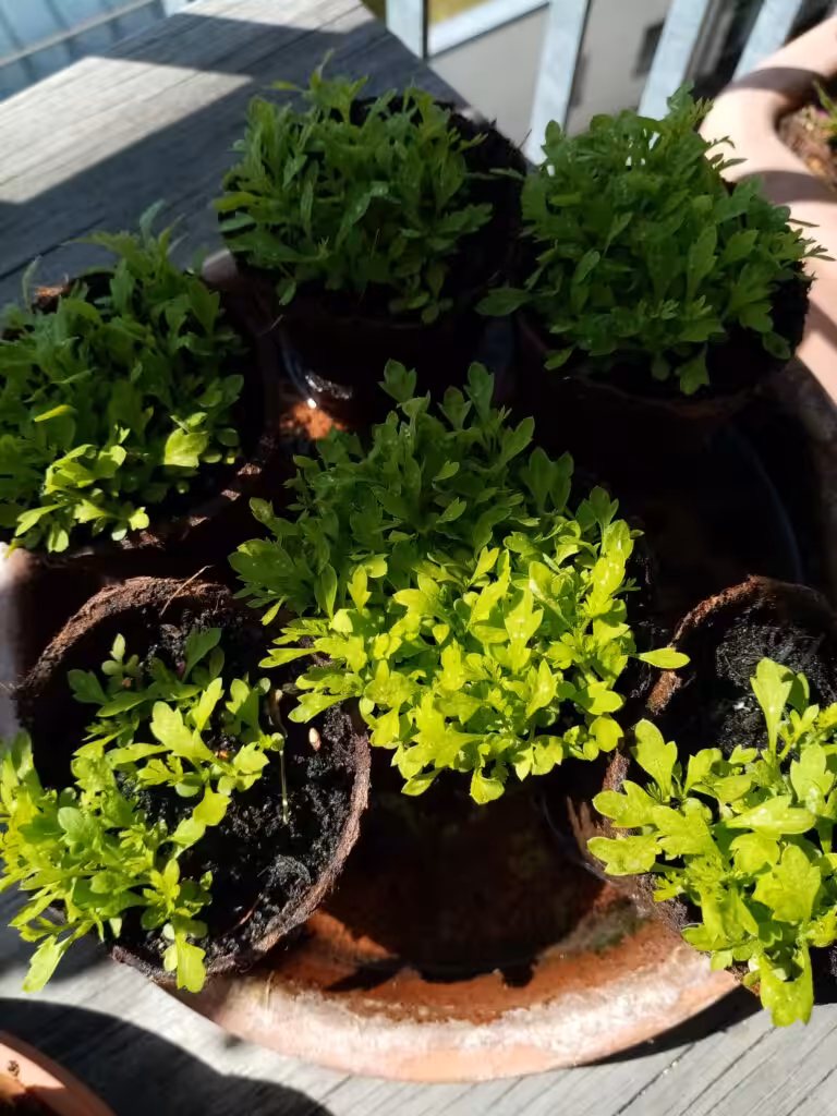 Last year I bought Arte­me­sia Annua seeds (from Chil­li­fee) and sowed each seed the size of a speck of dust indi­vi­du­al­ly in seed pots. After suc­cessful cul­ti­va­ti­on, I plan­ted them in lar­ger pots (as I now know, but not lar­ge enough), har­ve­s­ted them and almost for­got about them when they flowe­red. Then I quick­ly saved the alre­a­dy dry seeds befo­re the first frost. This spring I sowed them again and not only did new real Arte­me­sia Annua grow from the seed pots, but also ever­y­whe­re whe­re some seeds obvious­ly did­n’t end up in the bag when I har­ve­s­ted them in late fall, which means that the seeds even sur­vi­ved the cold win­ter.