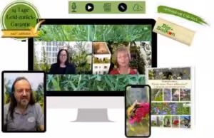- 29 Interviews Video & Audio, 4 Frage-Antwort-Runden und das Kongress-Handbuch zu pflegeleichten Pflanzen, die dem Klimawandel trotzen und die Promoting biodiversity.