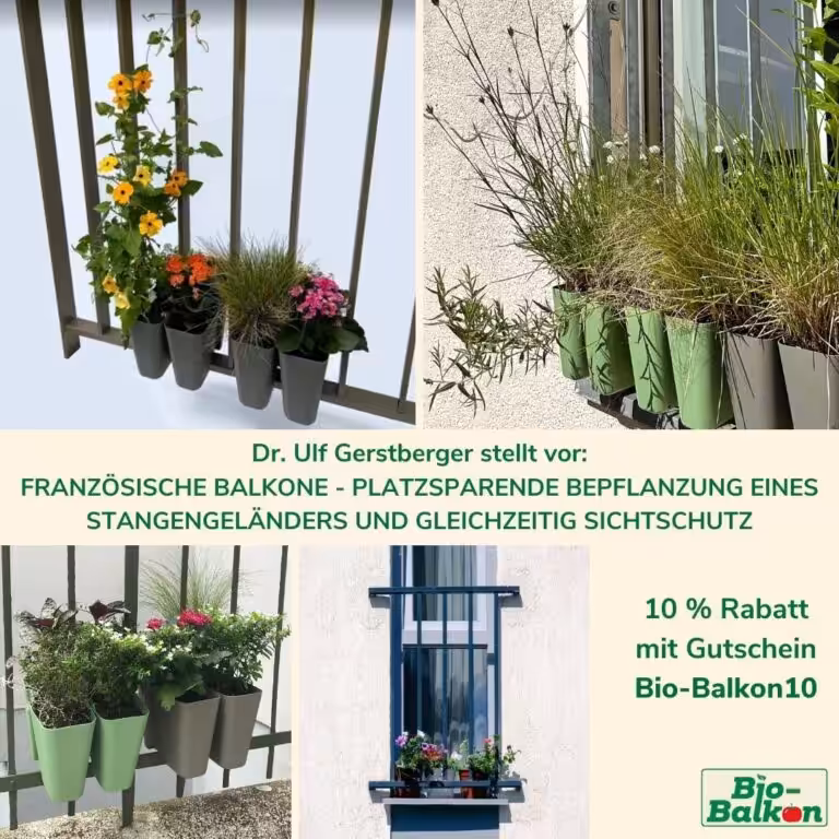 Französische Balkone — platzsparende Bepflanzung eines Stangengeländers und gleichzeitig Sichtschutz
