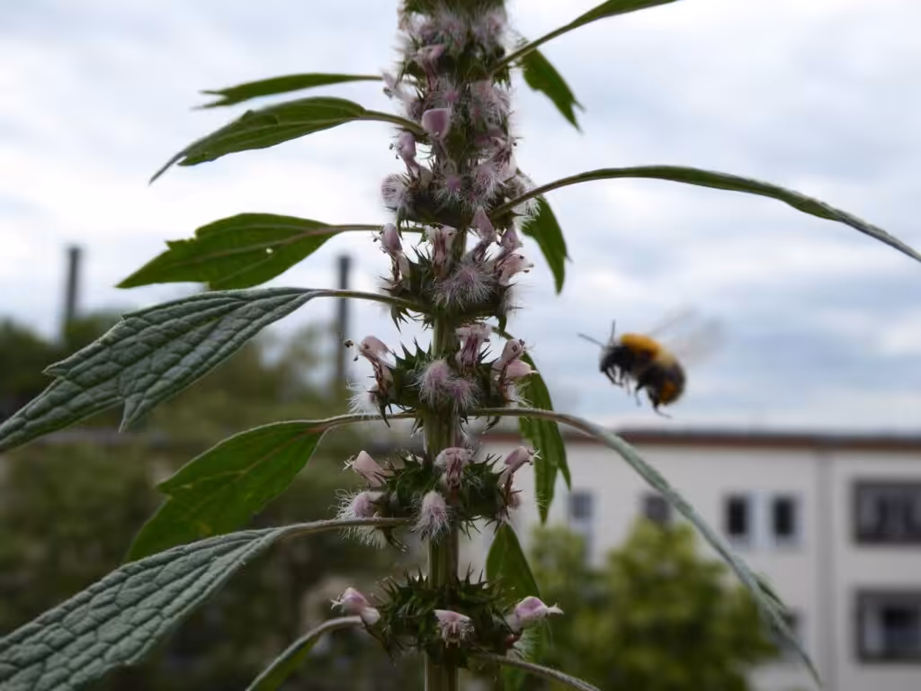 Nicht neidisch werden. Mitmachen bitte. Auf Deine Art. Es ist ja Deine Wellnessoase. Diese tolle Wildpflanze ist das Echte Herzgespann, auch Löwenschwanz oder Herzspannkraut genannt. Wie alle Pflanzen aus der Familie der Lippenblütler zieht sie magisch die Bienen an. Dort steppt der Bär — die Bienen tanzen. Ich habe diese Pflanze vom Wildbienenschreiner aus dem Schwarzwald bekommen. Ich besuchte ihn, um eine seiner fantastischen Insektennisthilfen zu kaufen. Er baut so tolle Beobachtungsnistkästen, wo man die Brut anschauen kann. Er baut diese Nisthilfen so, dass im Regelfall kein Schimmel- bzw. Pilzbefall auftritt, was in solchen Beobachtungsnisthilfen schon auftreten kann. Ich wollte meinem Sohn und den Lesern der Seite diese Art der Beobachtung ermöglichen. Jedenfalls der Wildbienenschreiner schwärmte so von dieser Pflanze und war so nett, mir eine mitzugeben. Sie ist phantastisch. Meine Pflanze des Jahres.