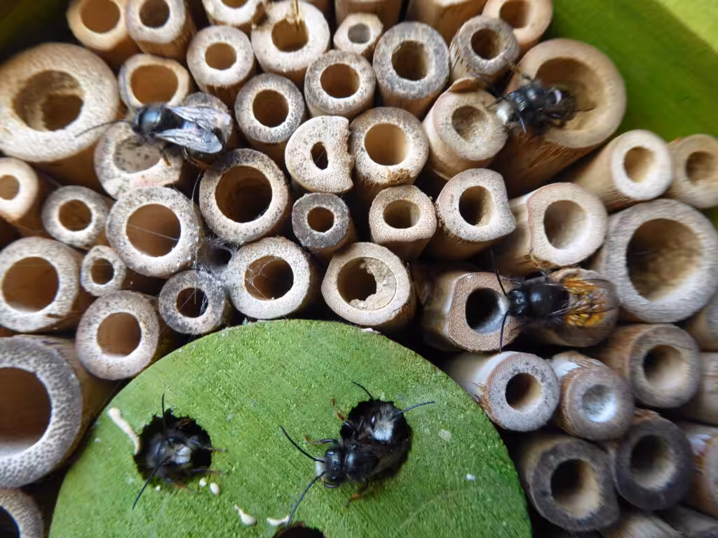 Wis­sens­wer­tes zu Wild­bie­nen und Emp­feh­lun­gen für Bezugs­quel­len von Insek­ten­nist­hil­fen fin­dest Du hier.