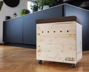 Der Agrar­wis­sen­schaft­ler David Wit­zeneder aus Ober­ös­ter­reich stu­dier­te Boden­kun­de und ent­wi­ckel­te zusam­men mit sei­nem Bru­der eine sty­li­sche Wurm­kis­te in Form eines Sitz­ho­ckers aus nach­hal­ti­gem Holz mit 1000 coo­len Haus­tie­ren. Ich bekam eine sei­ner ers­ten Wurm­kis­ten, kom­pos­tie­re seit 2015 Jah­ren in der Küche und habe sie und die Wür­mer doch tat­säch­lich ins Herz geschlos­sen. Da stinkt nichts, Wür­mer krab­bel­ten auch noch nie raus, der Wurm­hu­mus belebt mei­ne Erde in den Pflanz­ge­fä­ßen mit Mikro­or­ga­nis­men, die wir Bio-Gärt­ner haben wol­len und düngt bes­tens.