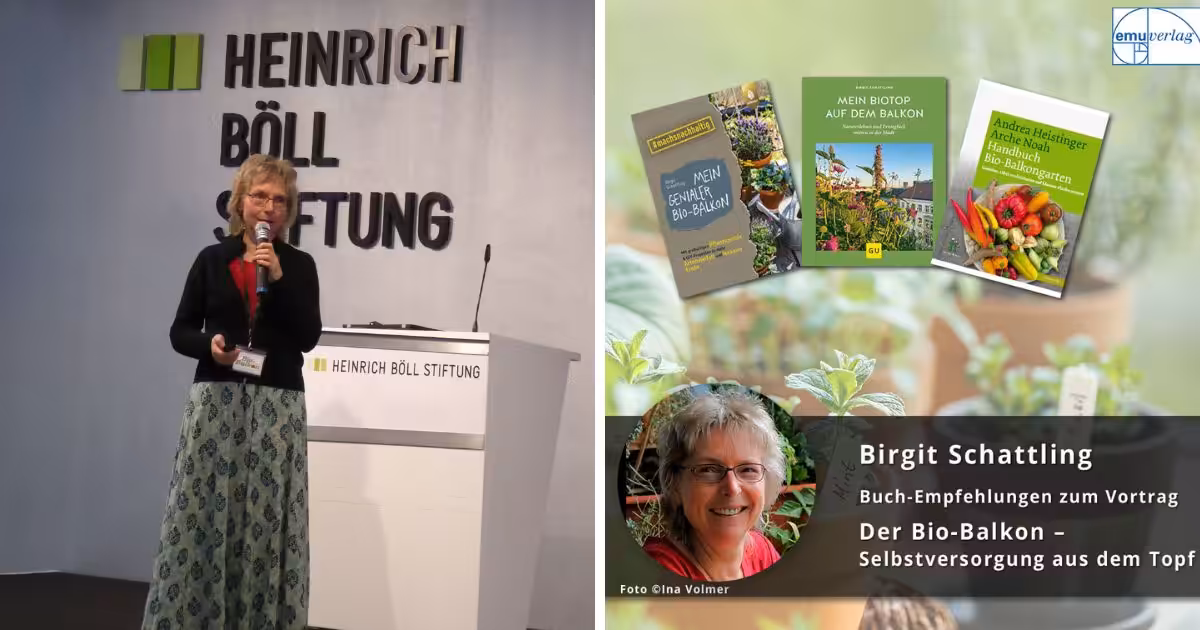Birgit Schattling initiierte die Bio-Balkon-Bewegung in 2017. Sie hilft (nicht nur) Stadtmenschen dabei, wieder mehr Grün und Selbstversorgung in die Städte zu bringen. Sie gibt praktische Anleitung für üppige, freudebringende Balkon-Oasen, die eine Wohltat für Menschen, Insekten und Tiere sind.
