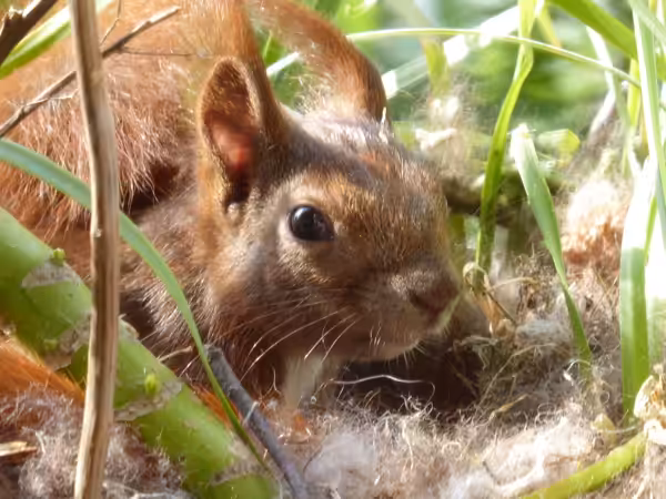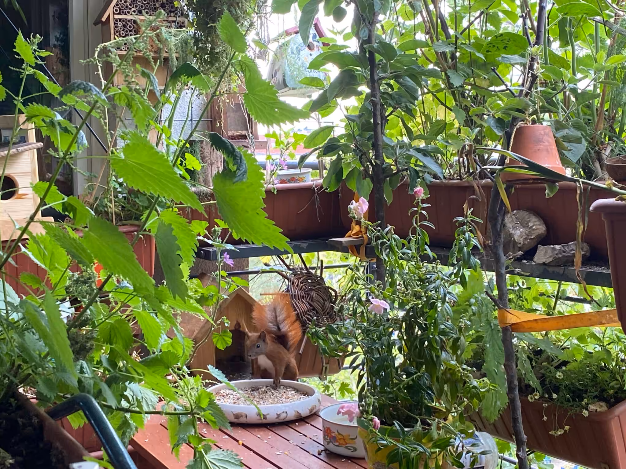 Den Dschungel und ein tolles Mikroklima bekam er im Laufe der Saison. Im Frühling wuchsen hier 4 junge Eichhörnchen auf.